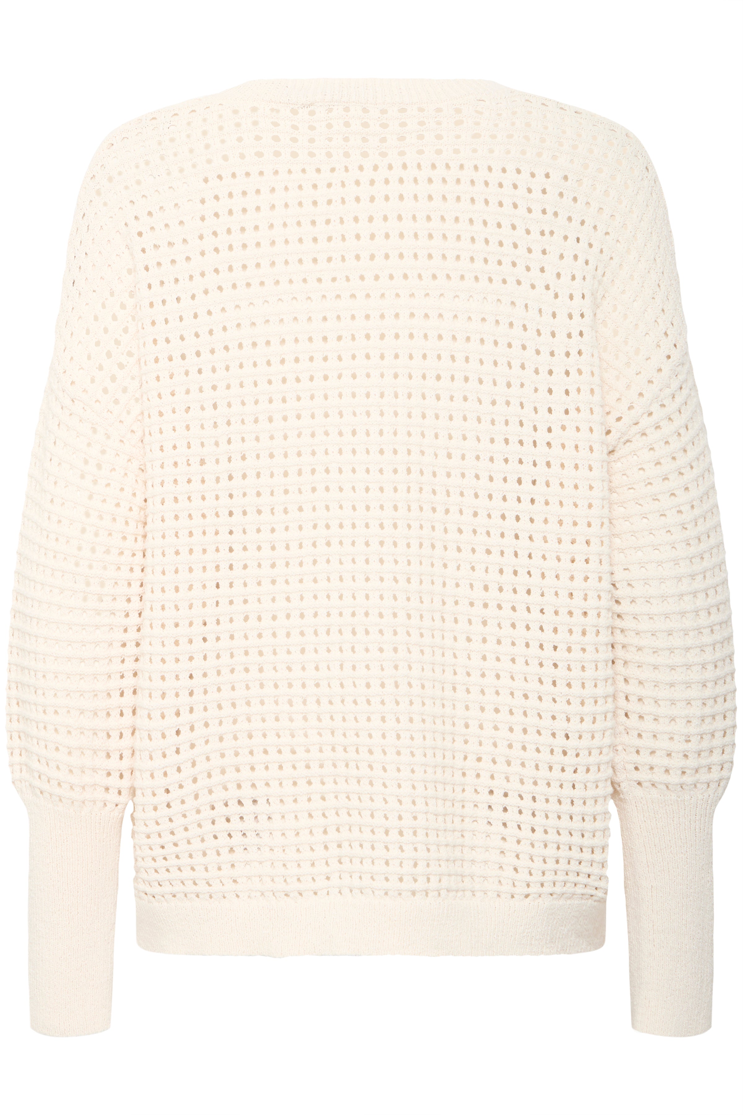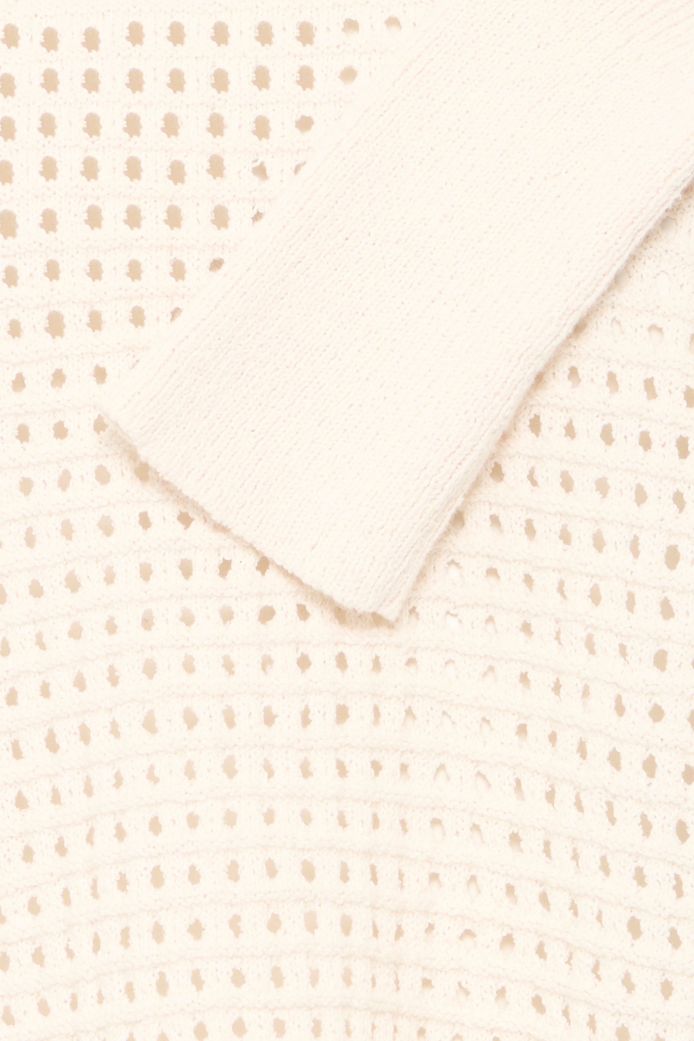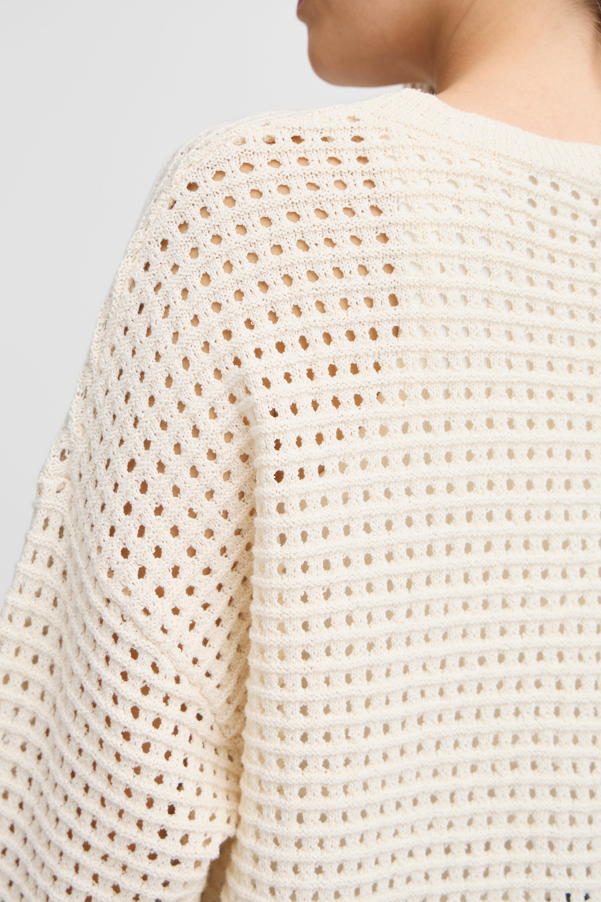 Oversizede trui in ecru met gaatjespatroon. Deze knit valt soepel door en is trendy door zijn oversizede pasvorm.