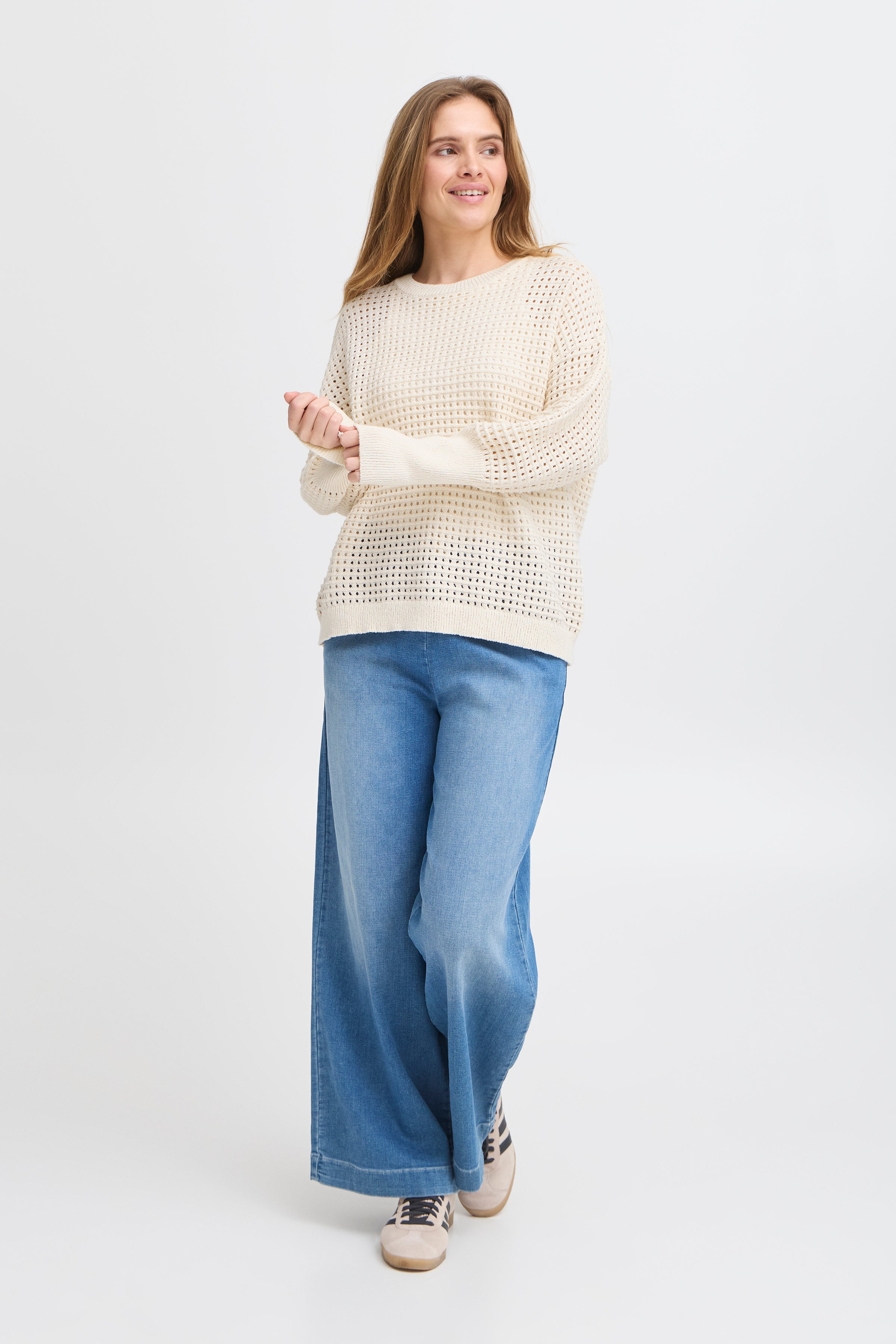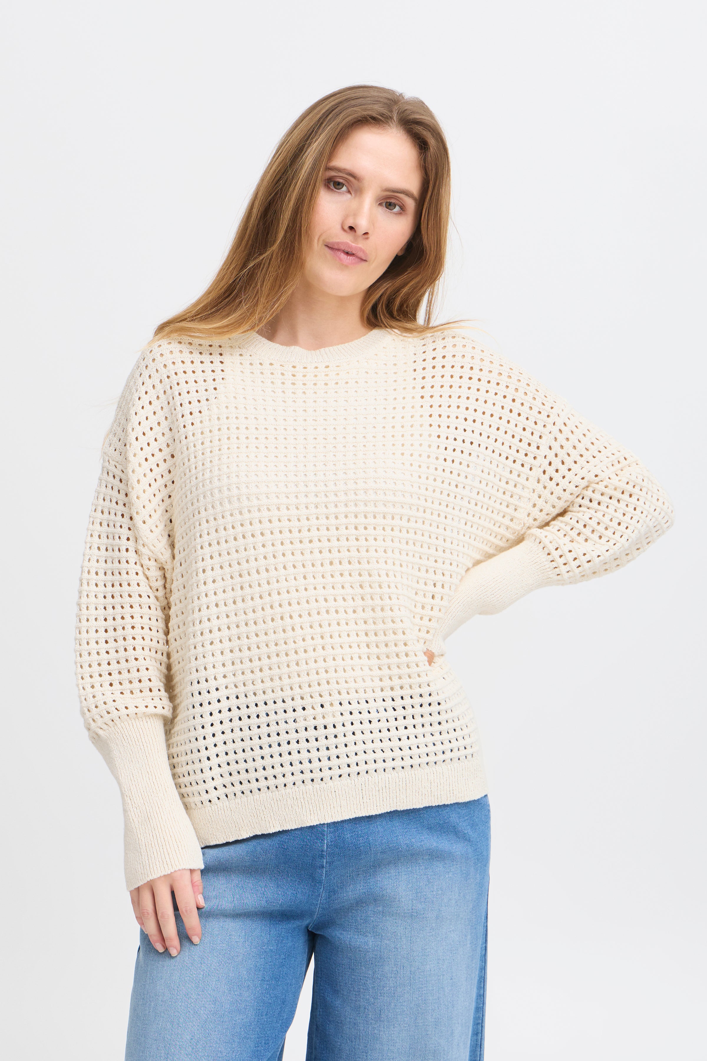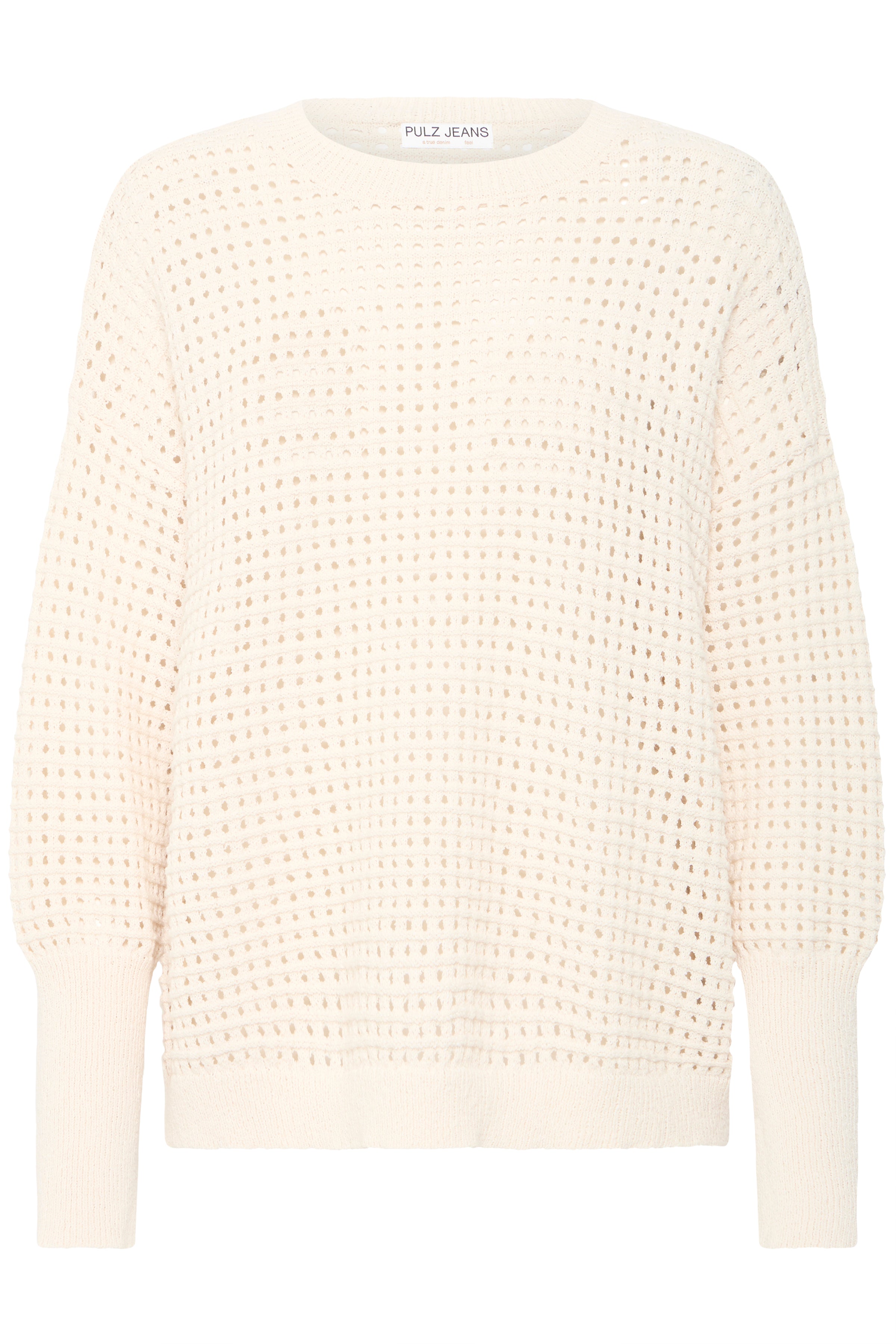 Oversizede trui in ecru met gaatjespatroon. Deze knit valt soepel door en is trendy door zijn oversizede pasvorm.