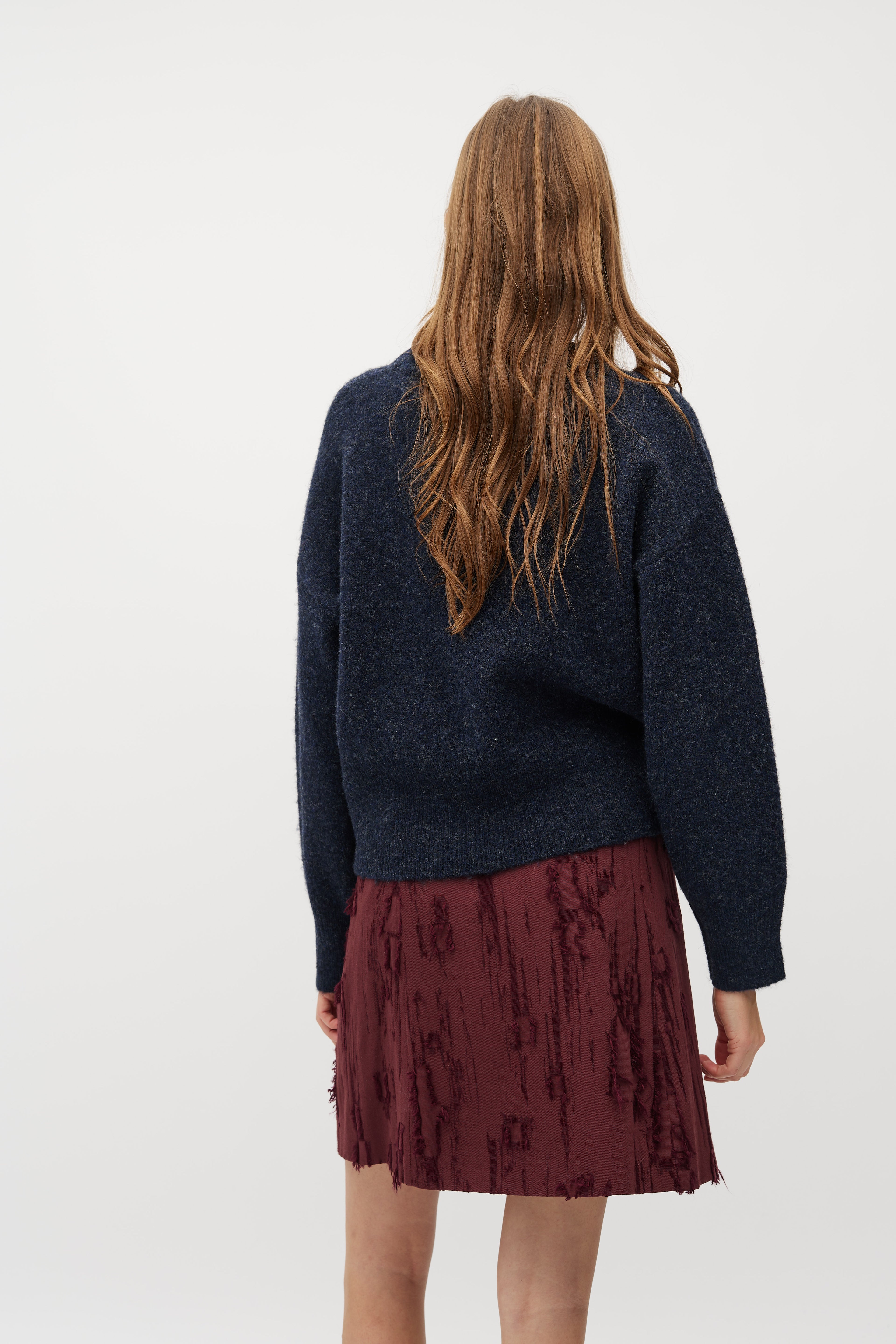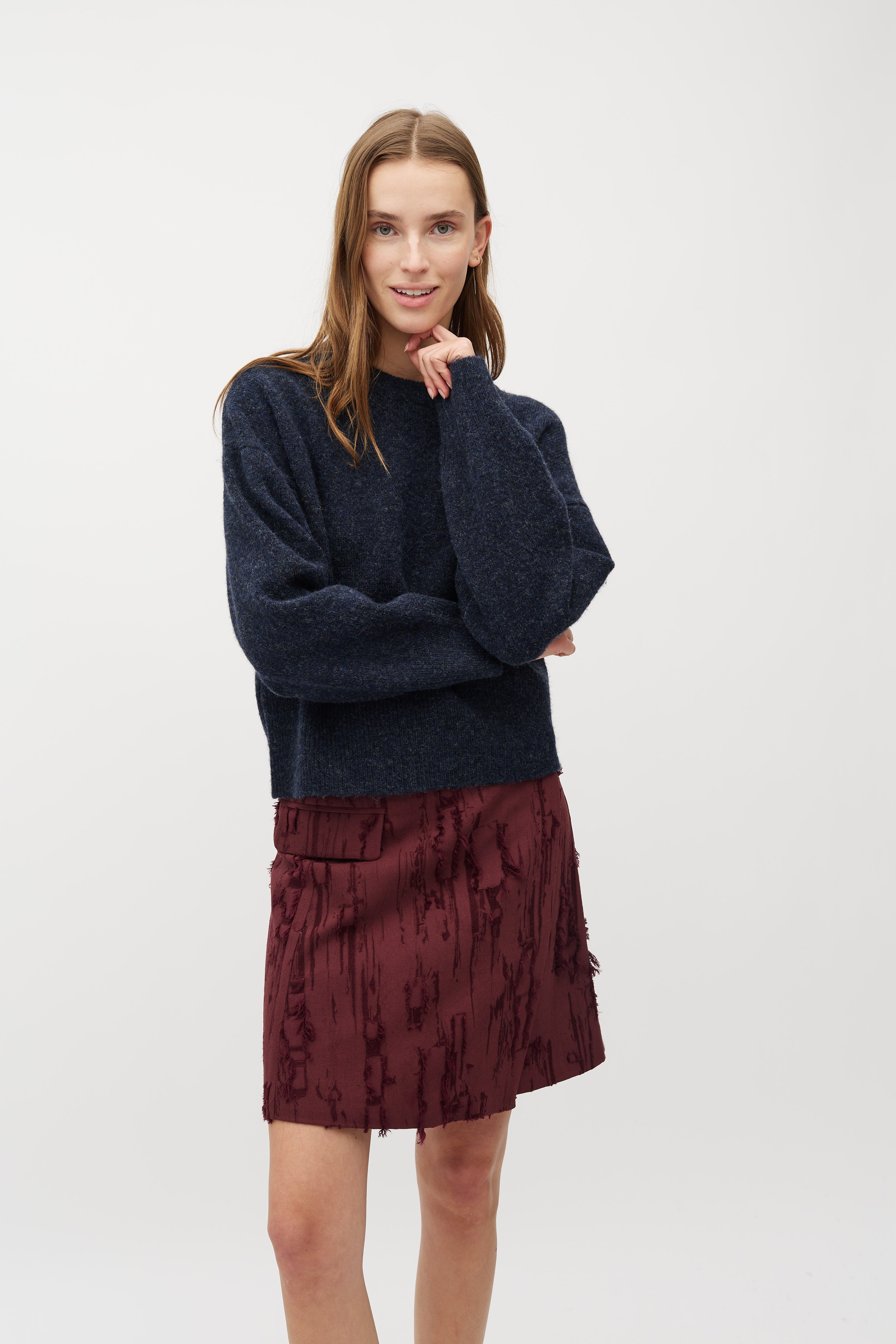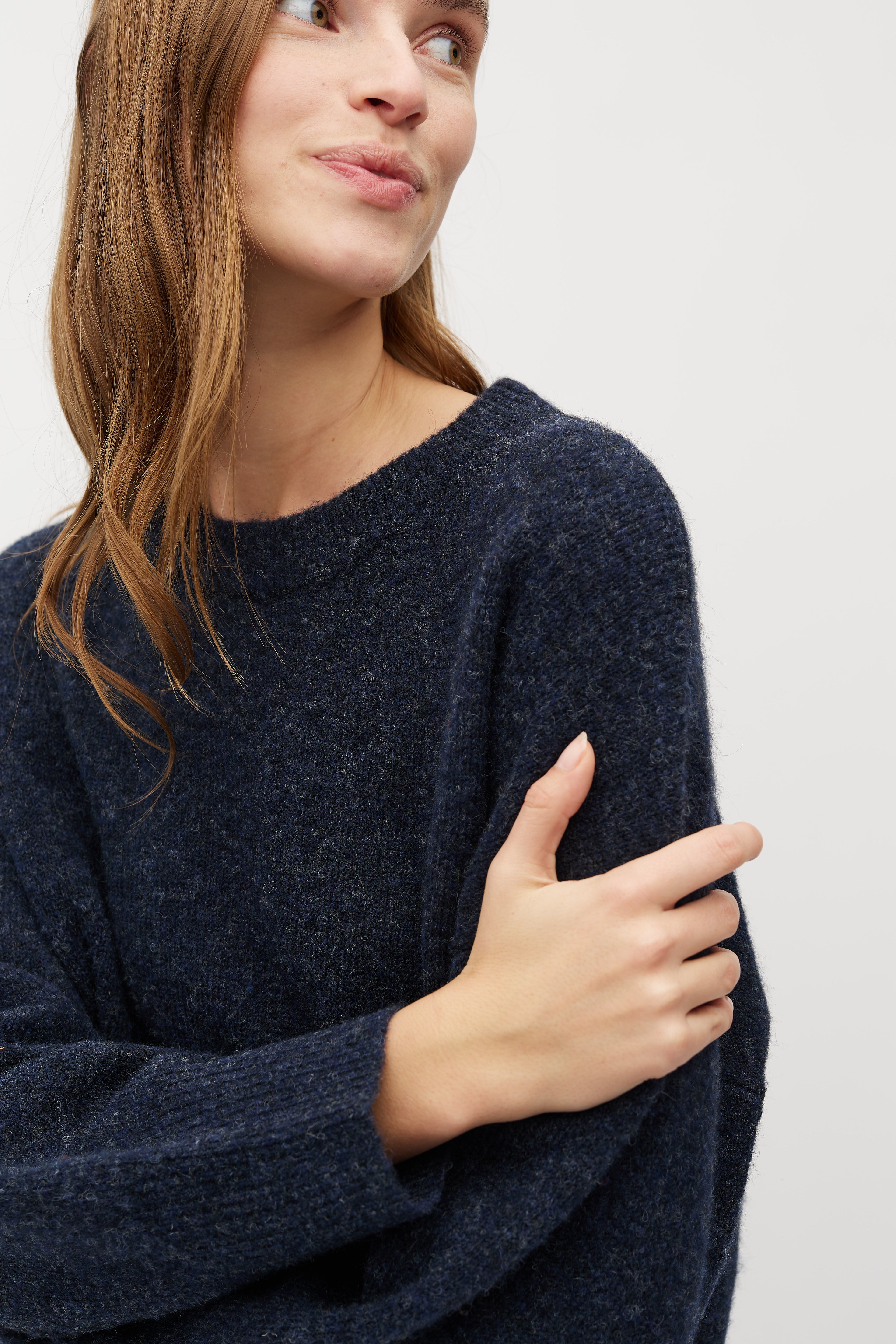 Deze trui met verlaagde schoudernaad, ronde hals, korte taille en losse pasvorm kan gecombineerd worden met alle type broeken en rokken. Een musthave!