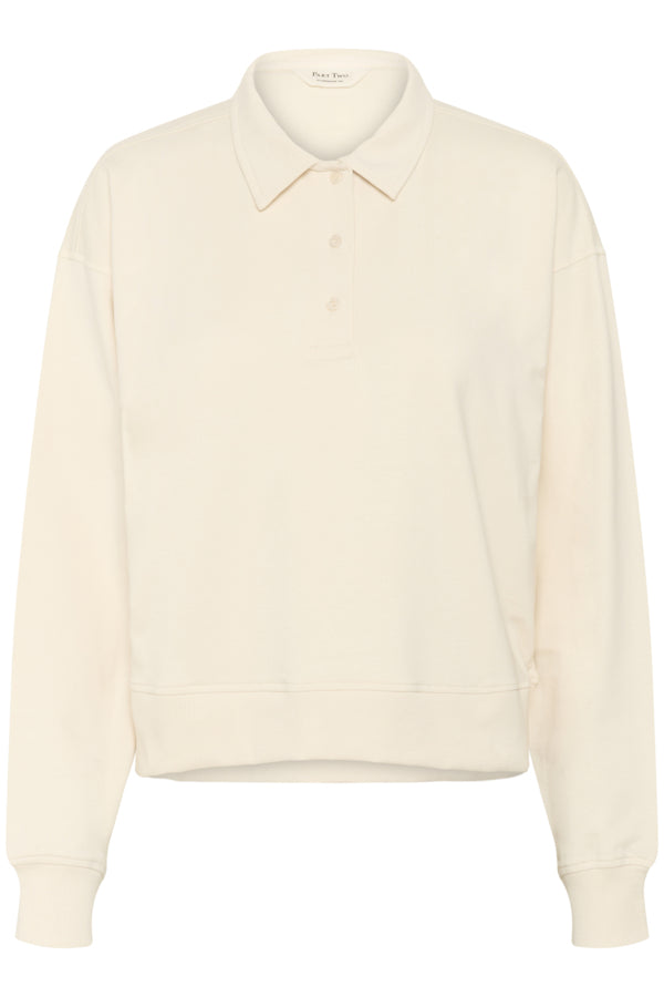 Beige sweater van Part Two, met kraagje en knoopjes vooraan.