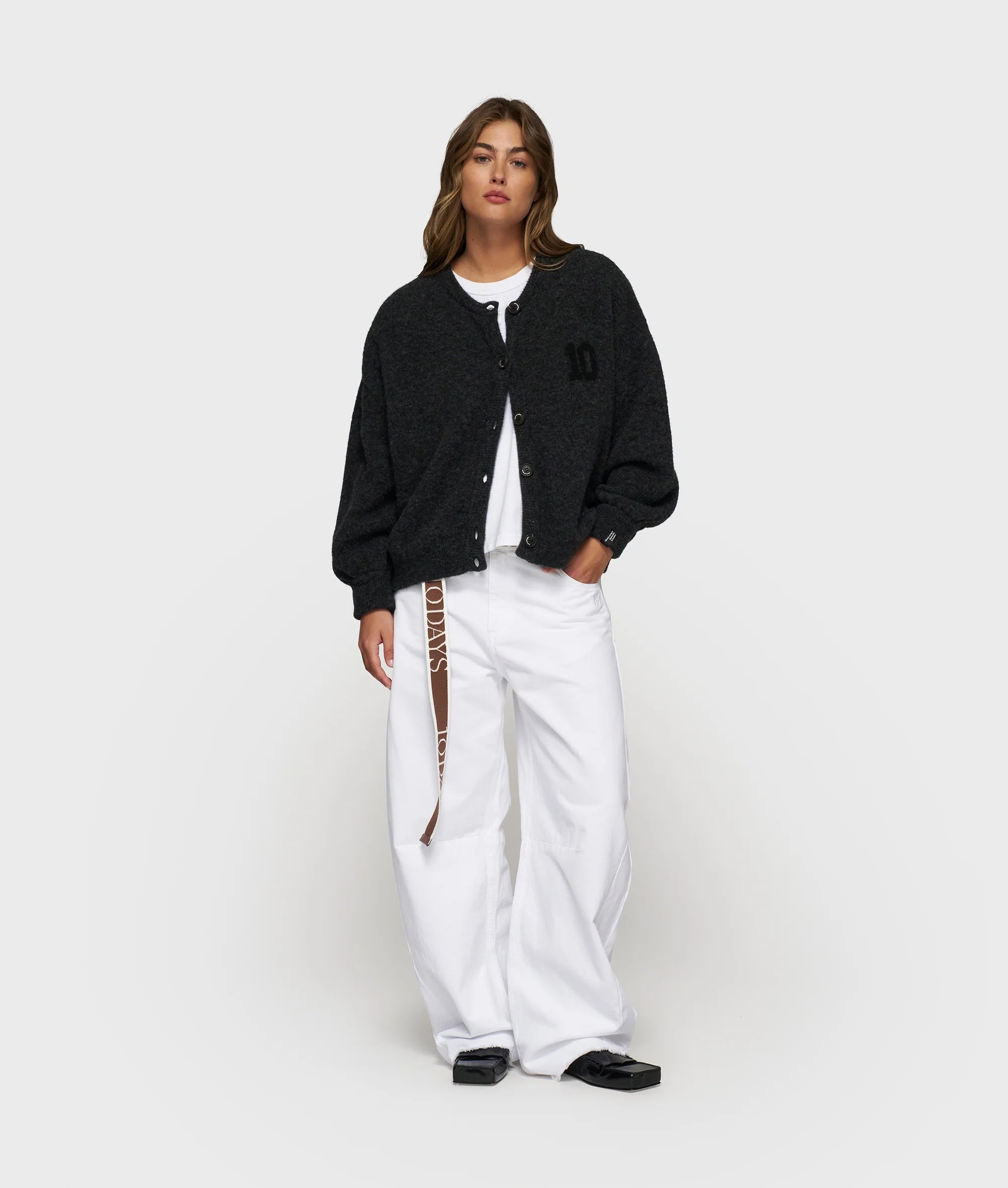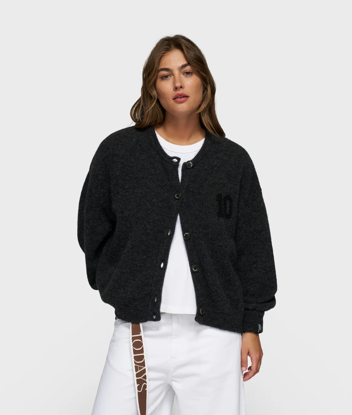 Relaxed fit gebreid vest, gemaakt van een zachte alpaca wolblend. Voorzien van een knoopsluiting, rib gebreide ronde hals, zoom en manchetten, een tagline label onderaan de linkermouw en een subtiele ingeweven 'baseball 10' op de borst.