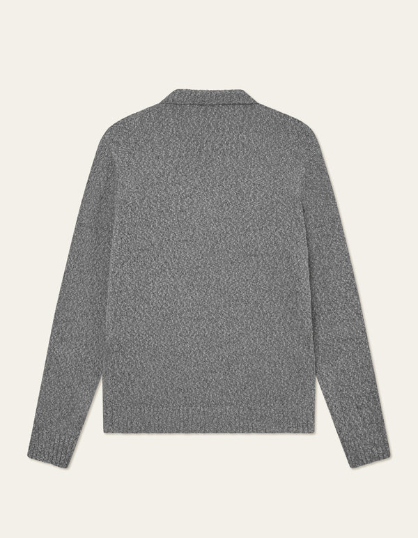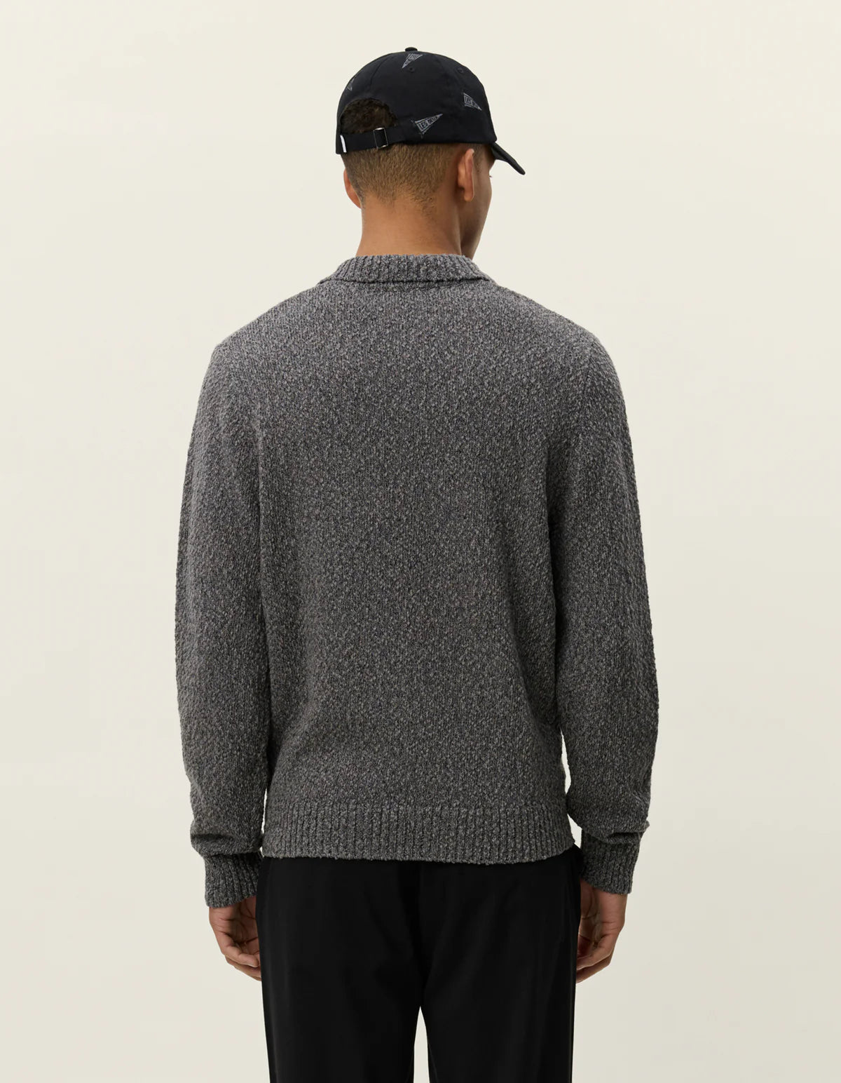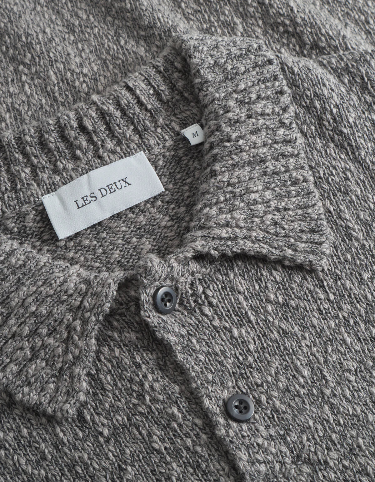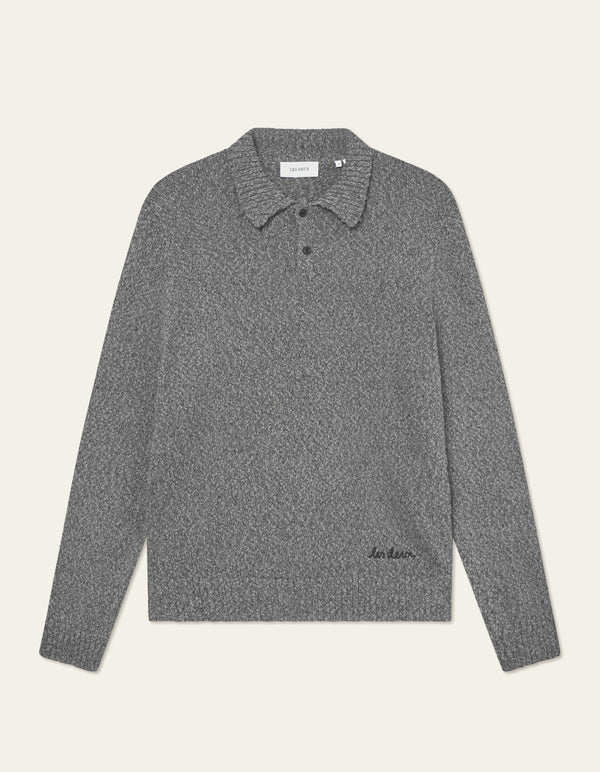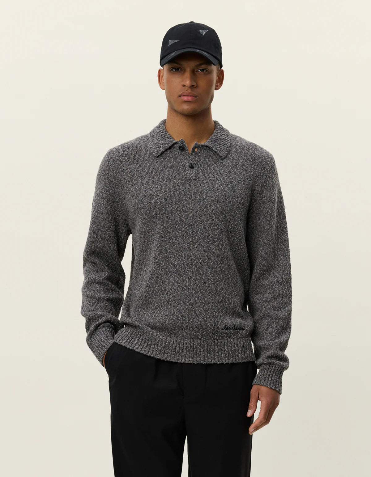 De Billy Mouliné gebreide polo combineert een klassieke polostijl met een tactiele twist in een ton-sur-ton, tweekleurig katoengaren met een subtiel slubeffect. Hij heft een klassieke polokraag met sluiting en geribbelde manchetten en zoom. Het Les Deux logo vind je subtiel met kettingsteekletters op de zoom.