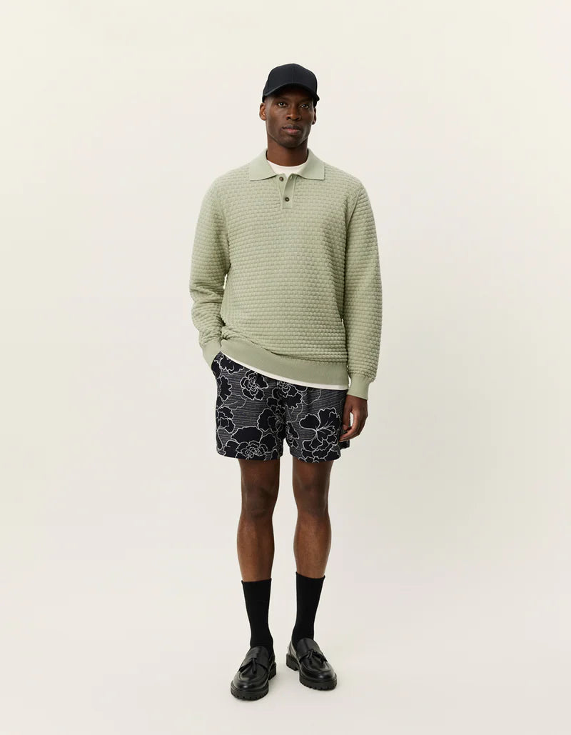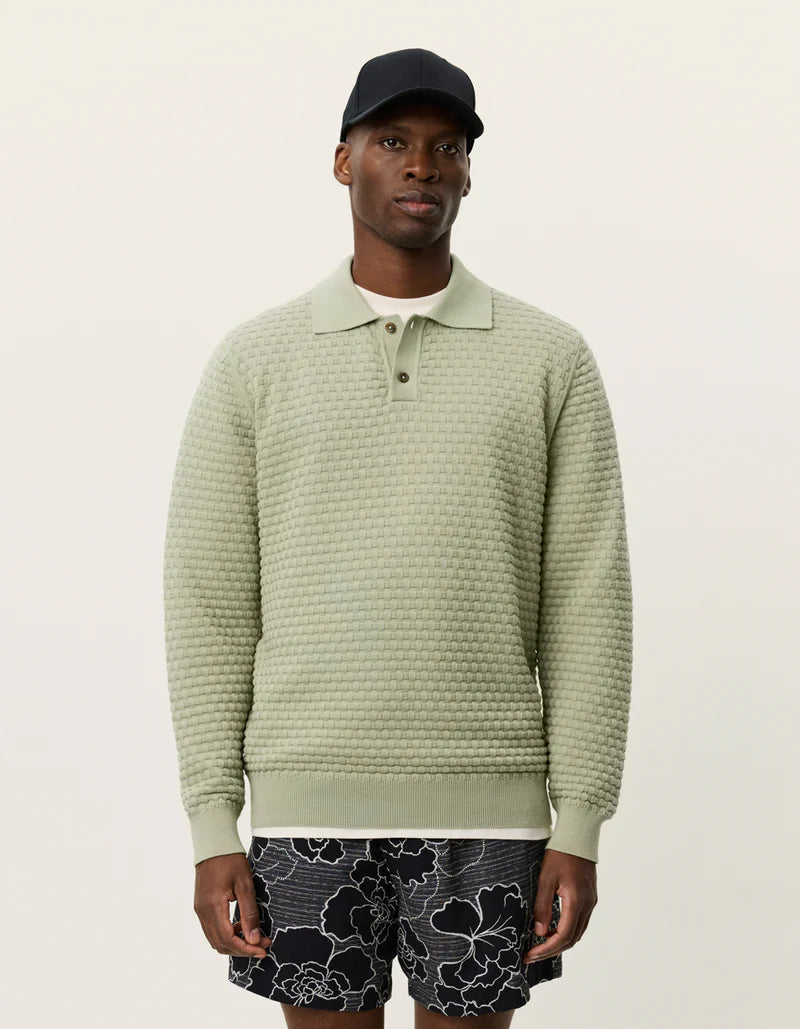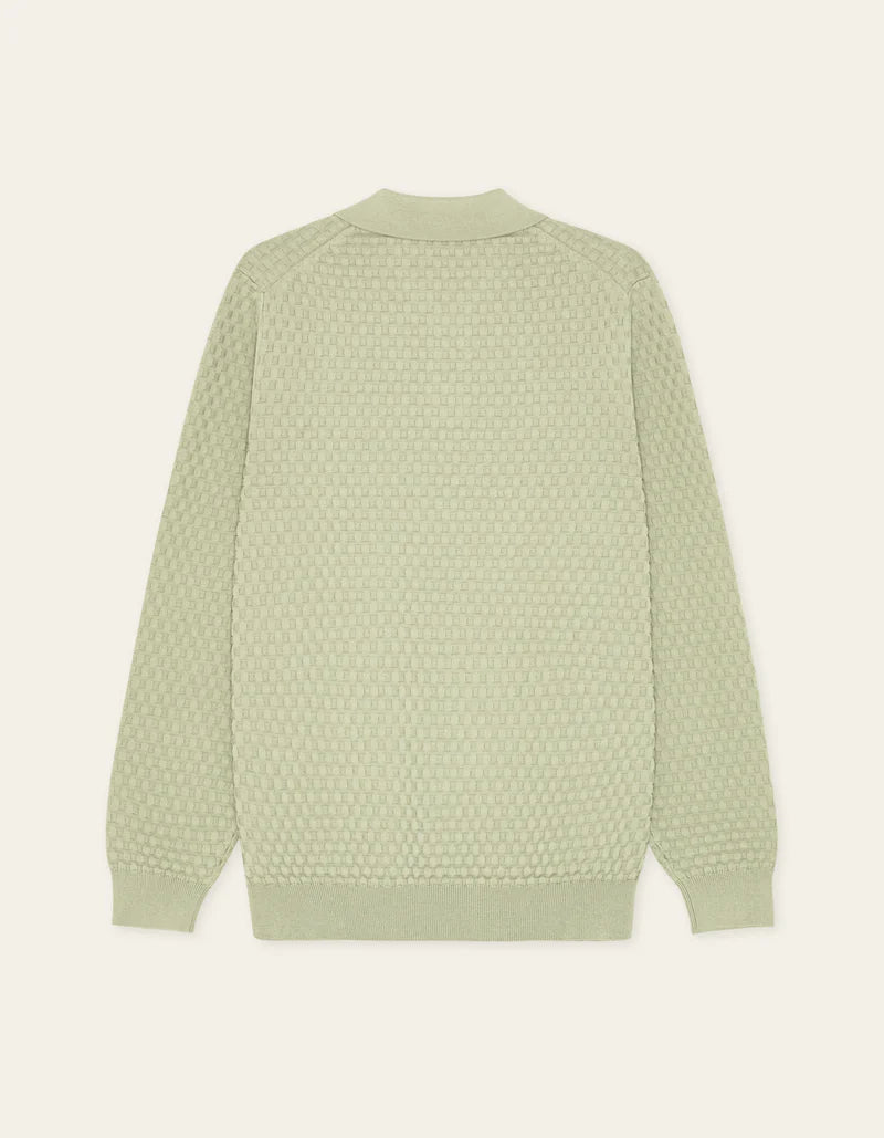 Een polo met lange mouwen en een gestructureerde, geweven structuur. De Billy heeft een geribbelde kraag, een nette knoopsluiting en geribbelde manchetten voor een verfijnde, alledaagse look. De gestructureerde, geweven structuur maakt hem elegant en een tikkeltje formeel.