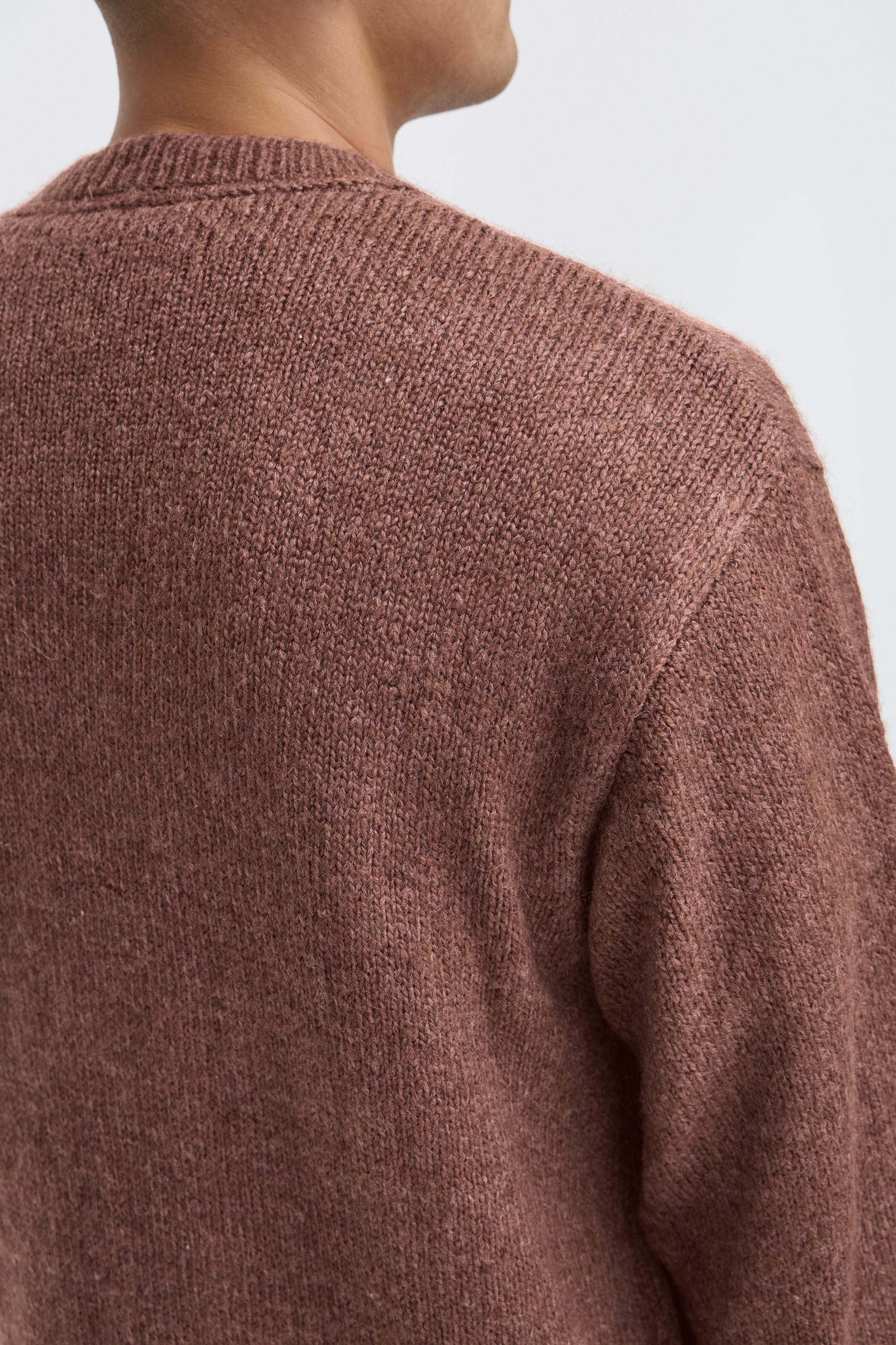 De Hamandi trui is een minimalistische trui met ronde hals. Hij is er in bordeauxbruin en zachtblauw.