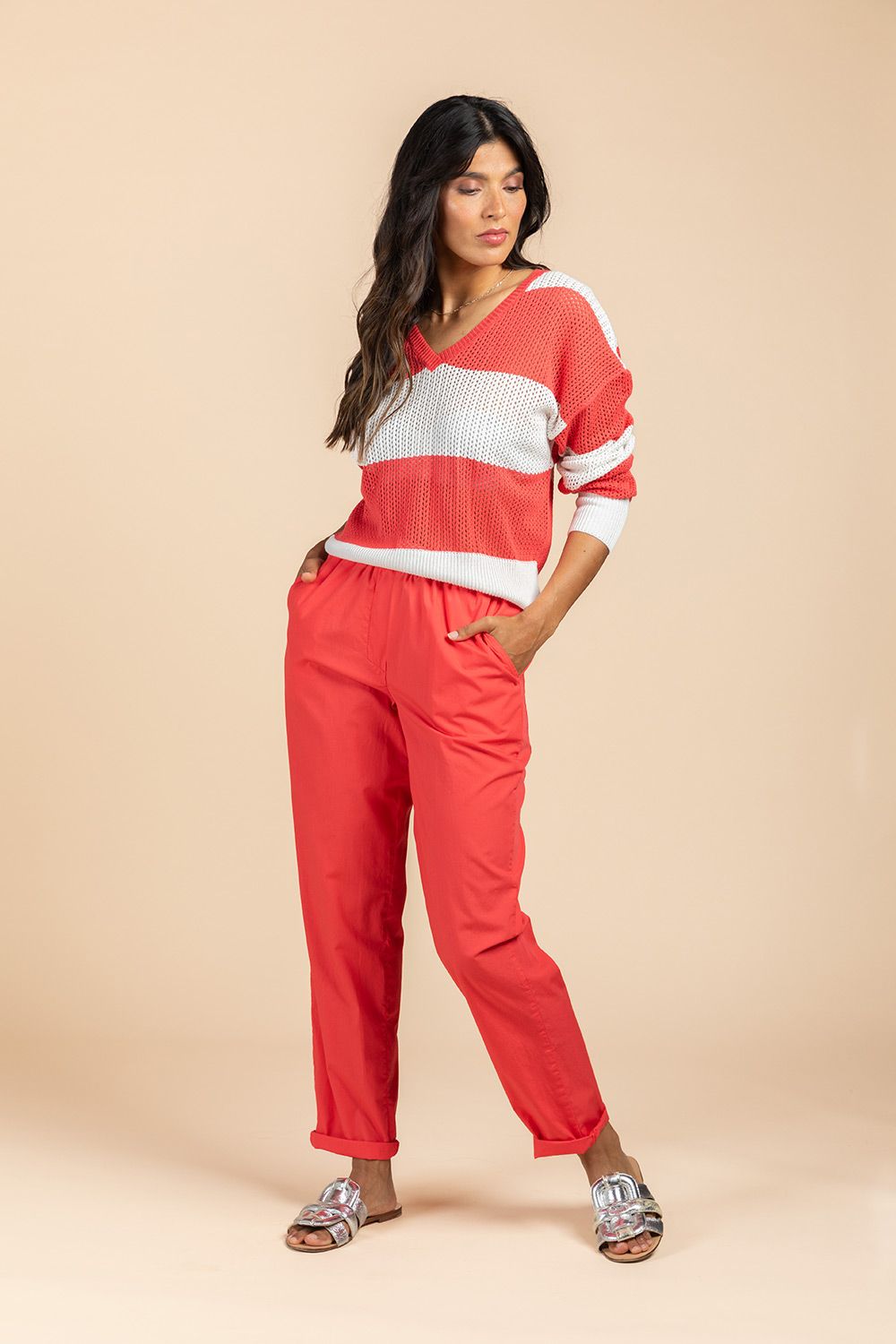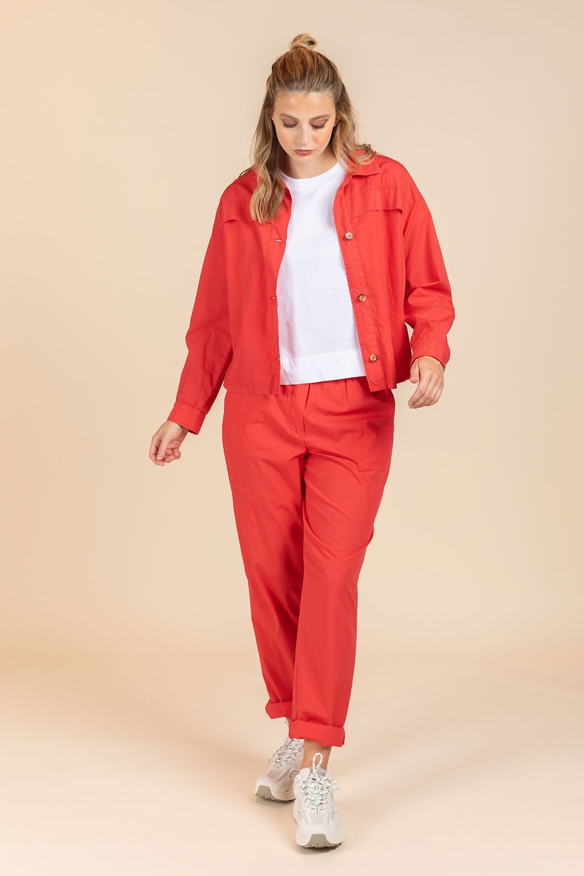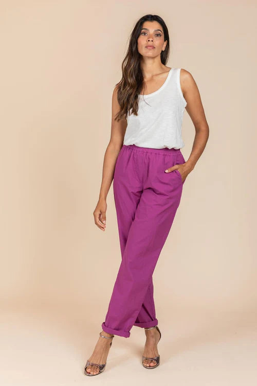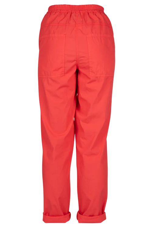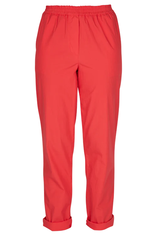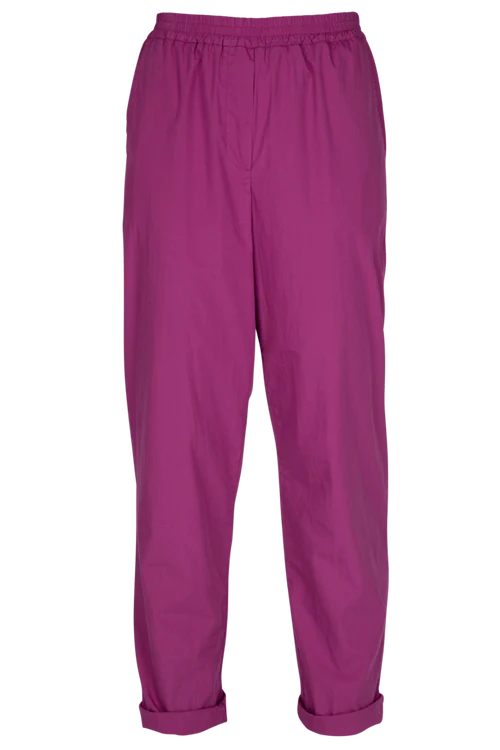 Deze broek is vervaardigd uit een katoen popeline stof en is ideaal voor de start van de lente, perfect voor de eerste zonnige dagen. De elastische band biedt ultiem comfort. Maak verschillende looks door de broek onderaan al dan niet om te plooien. Combineer ze met het bijpassende hemd of de leuke strepensweater.