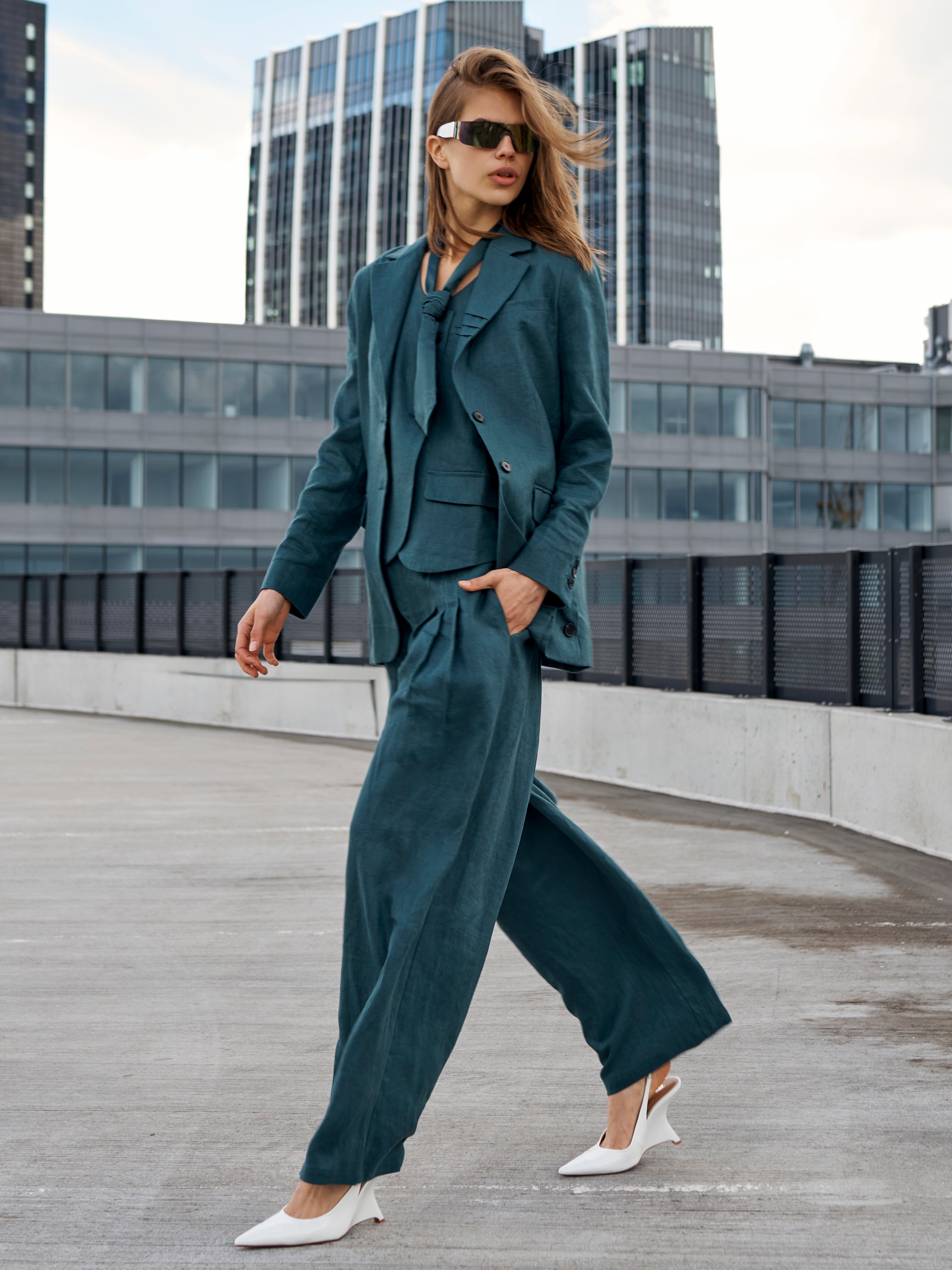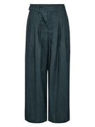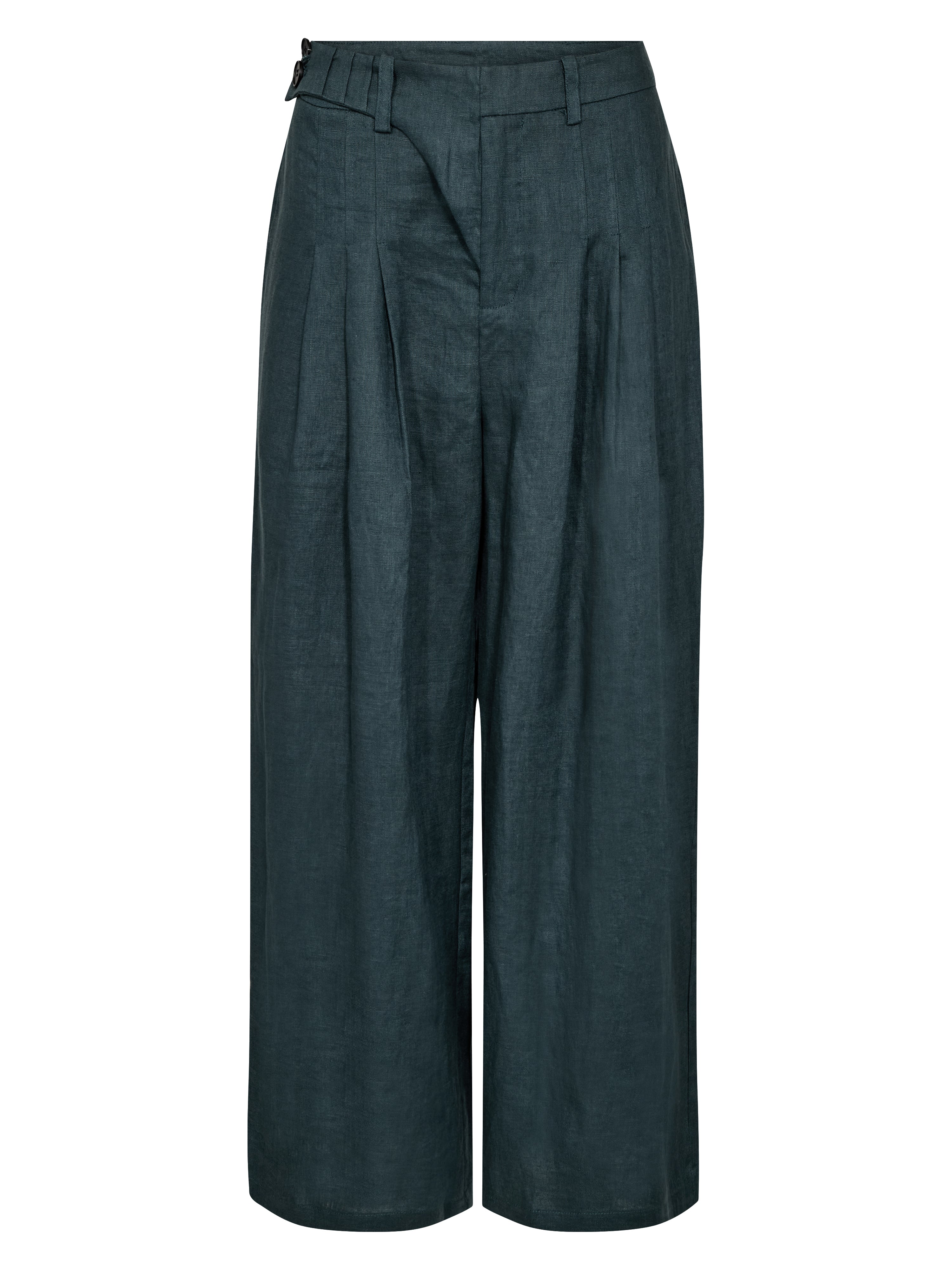 Deze Camila broek heeft een rechte pasvorm met wijde pijpen, waardoor hij licht en elegant valt. Aan de voorkant zijn fijne plooien aangebracht die de broek vorm geven en wat extra breedte, terwijl de achterkant subtieler is. De linnen kwaliteit maakt de broek comfortabel om te dragen en geschikt voor zowel warme dagen als gelaagde outfits. Combineer de broek met het bijpassende vest of de blazer voor een gecoördineerde set, of draag hem met een eenvoudige top of blouse voor een stijlvolle alledaagse look.