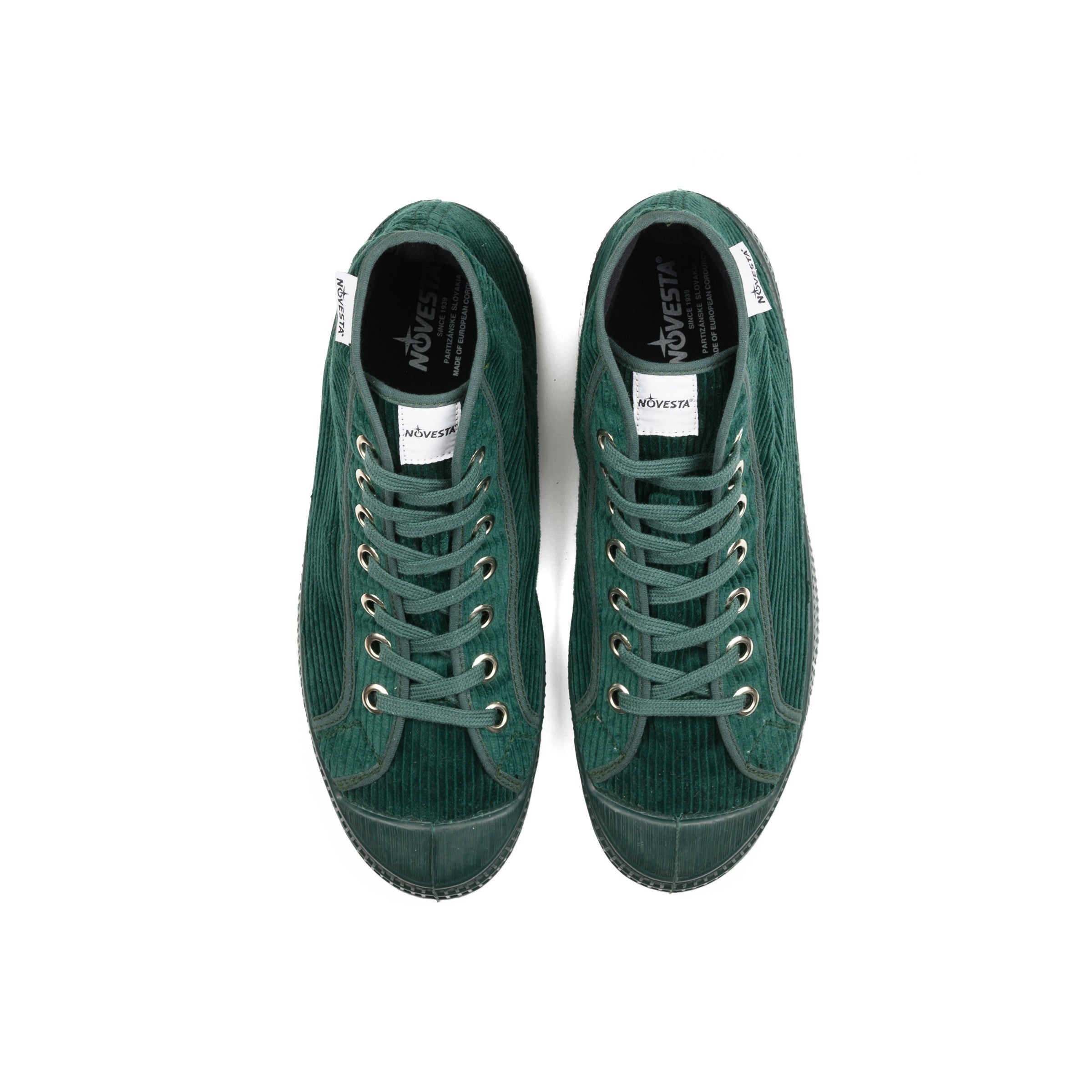De sneaker die al furore maakt sinds 1830. Kwaliteit draagt Novesta hoog in het vaandel. Deze Cord mono green heeft een groene ribfluwelen stof en een groene rubberen zool.