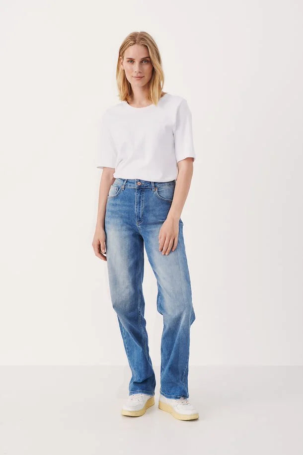 De Esraa jeans is een mom jeans met een hoge taille. Ze is lichtjes afgewassen voor- en achteraan. Een musthave in de kleerkast van elke vrouw !