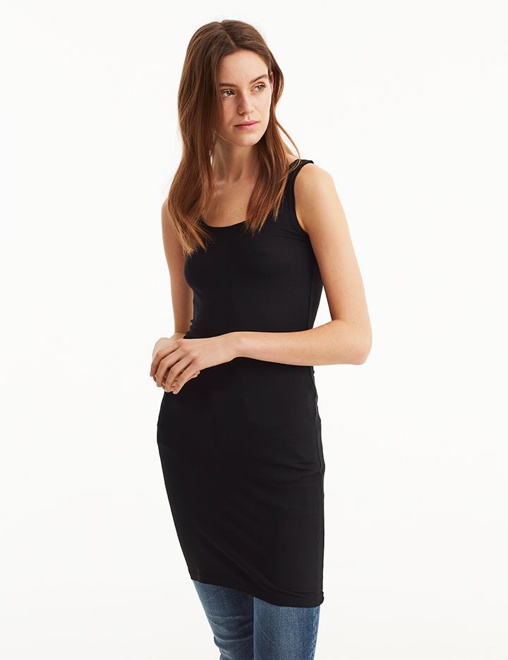 Lina is een zwart onderkleed uit de GoGreen collectie van mbyM. Dit kleed draag je onder elk ander kleed en is een comfy musthave in elke garderobe. Het draagt super aangenaam op de huid en heeft voldoende stretch voor extra comfort. Ideaal als je de stof van je bovenkleed te transparante vindt, een kleedje redelijk kort is of je een extra warm laagje wil toevoegen.