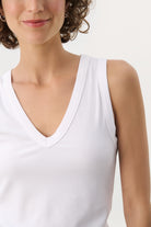 Rode zomertop met V-hals en ribstructuur. Hij sluit mooi aan en voelt super aangenaam aan op de huid door de zachte viscose.