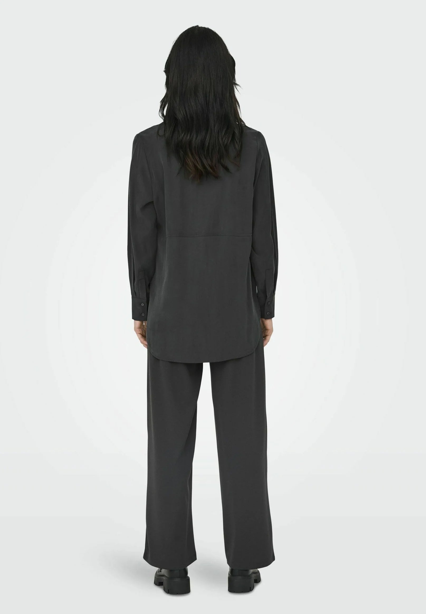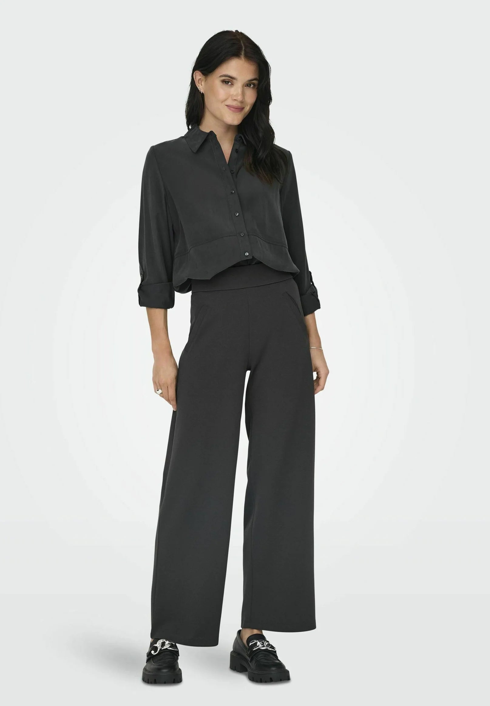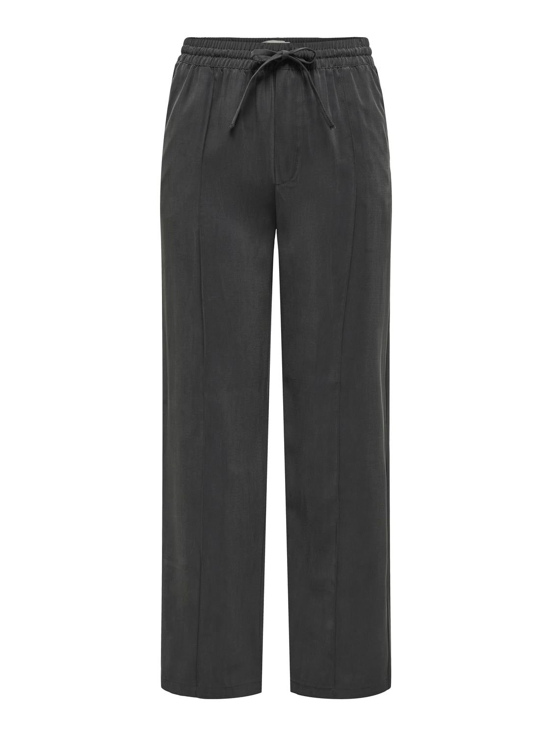 Weer een pareltje in huis van JDY in fijne viscose. Deze Olli broek heeft bovenaan een elastische tailleband met trekkoord en rechte pijpen. 2 steekzakken vooraan en valse achterzakken. Combineer met het bijhorende Olli hemd.