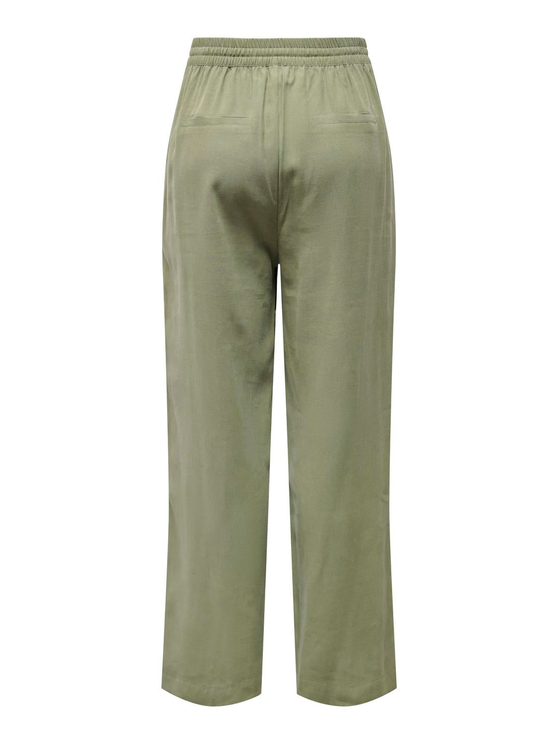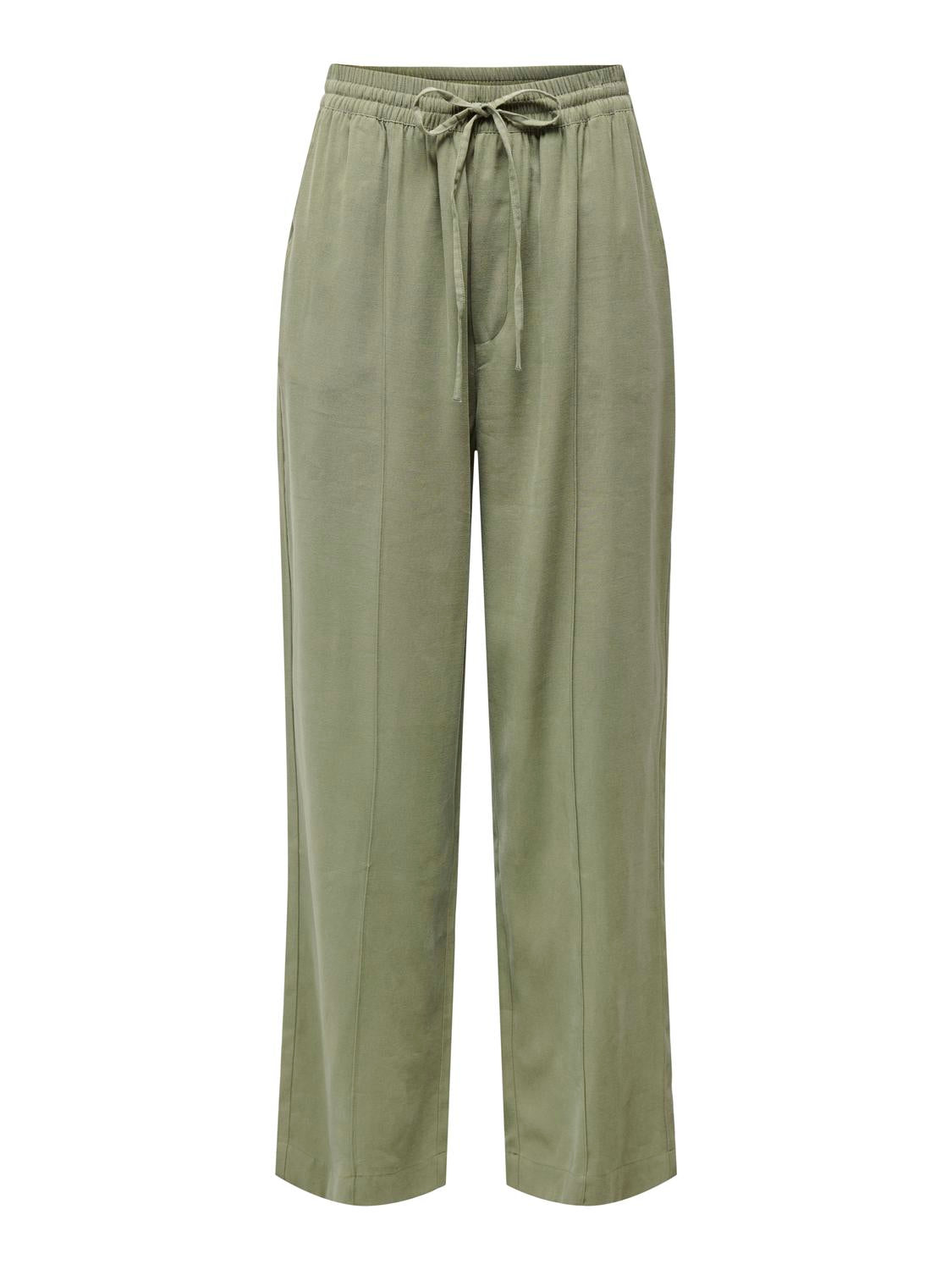 Weer een pareltje in huis van JDY in fijne viscose. Deze Olli broek heeft bovenaan een elastische tailleband met trekkoord en rechte pijpen. 2 steekzakken vooraan en valse achterzakken. Combineer eventueel met het bijhorende Olli hemd.