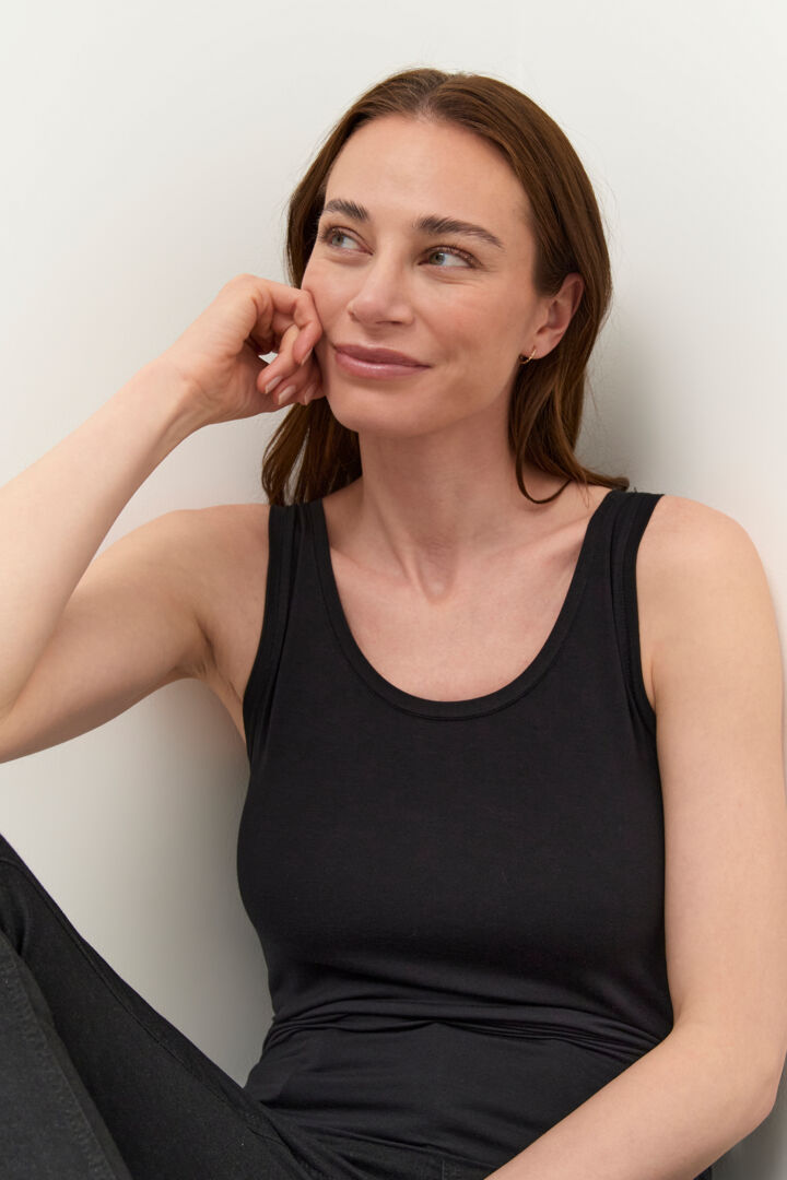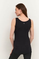 Zwarte zomertop met ronde hals in een aanpassendere fit.