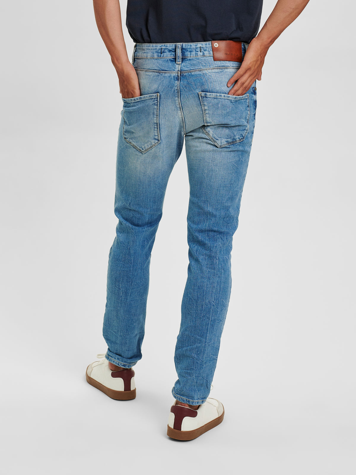 Een ander favoriet jeansmodel is de Rey: een straight slim fit model met knoopsluiting. De achterzakken staan iets lager op het achterwerk dan bij de Jones wat zorgt voor een trendy, jonge look.