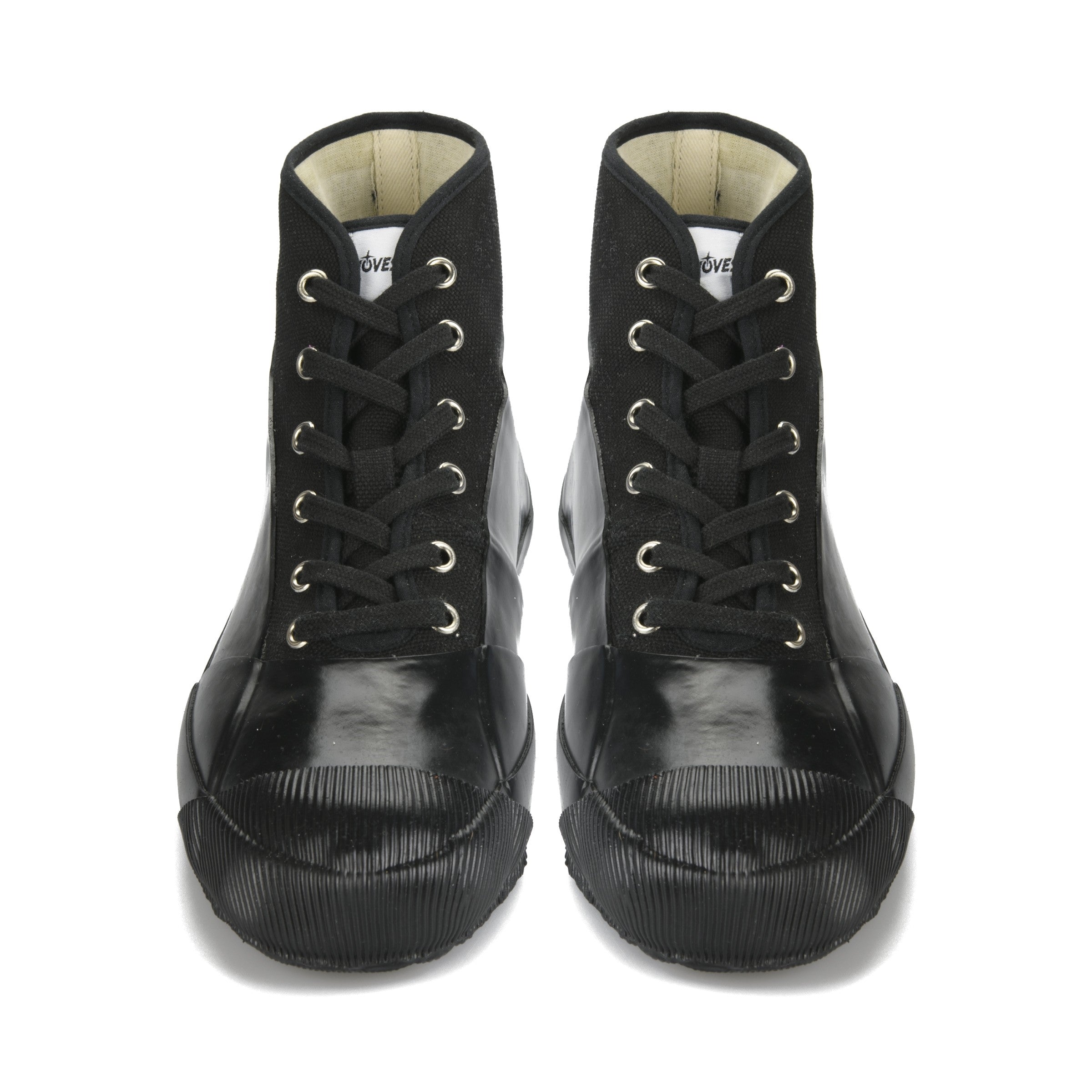 Deze rubberen hoge sneaker is perfect voor het winterseizoen met z'n strakke zwarte kleur en waterdichte coating. Handgemaakt en vegan, rechtstreeks uit Slovakije!