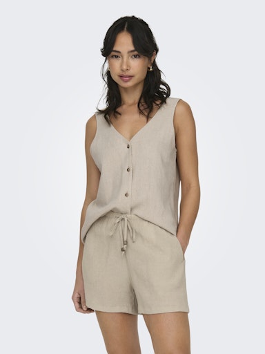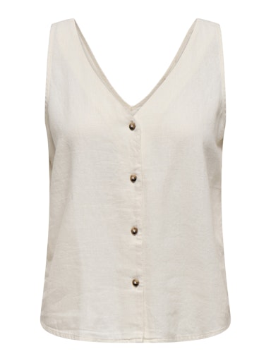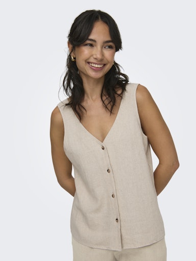Zomerse top met V-hals en knoopjes in een mix van linnen en viscose. Match met de bijpassende Say broek en je hebt een stijlvol setje voor een zachte prijs..
