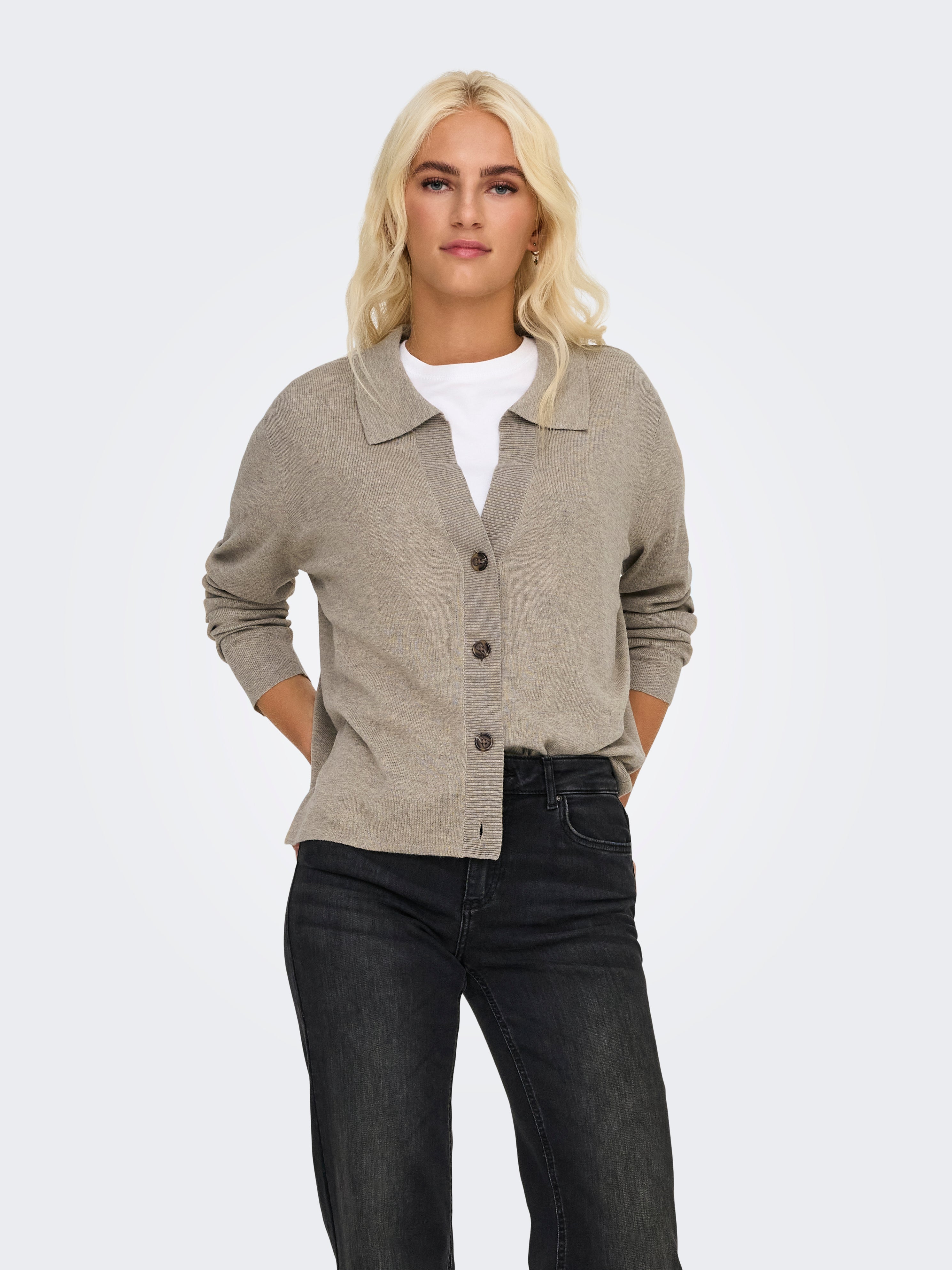 Deze Esme trui/cardigan hebben we in 2 kleurtjes (zand en grijs) en is perfect voor het tussenseizoen. Tijdloos fit!